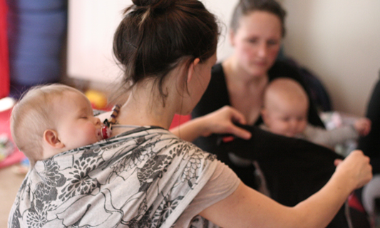 Der Kurs „Von Anfang an“ ist für Eltern, die ihr Baby im Tragetuch am Bauch tragen möchten, jedoch noch keine Erfahrung mit dem Tragetuch haben. Ich zeige euch, wie man das Baby sicher ins Tuch bindet, es gut einbeutelt und wieder raus bekommt. Wir üben zusammen ein bis zwei Wickeltechniken mit dem Tuch. Auf Tragehilfen wird selbstverständlich auch eingegangen.